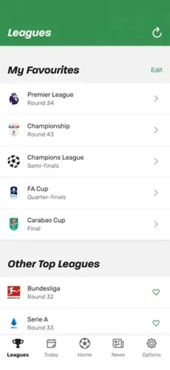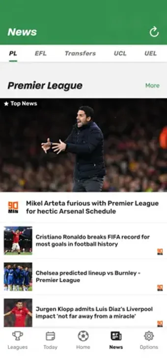 Son iki sekme, sporla ilgili her şeyi okuyabileceğiniz Haberler'e ve önemli hiçbir şeyi kaçırmamak için push bildirimlerini yapılandırabileceğiniz Seçenekler sayfasına ayrılmıştır. Garip bir eksiklik, takım logolarının, bayraklarının ve oyuncu fotoğraflarının eksik olmasıdır. Sonunda elde ettiğiniz şey, daha iyi kullanılabilecek boş kullanılmayan alandır.